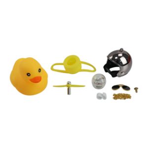 PATO DECORATIVO AMARILLO CON CASCO CROMADO PLATEADO
