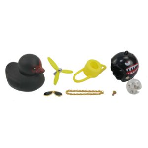 PATO DECORATIVO NEGRO CON CASCO BOMBA